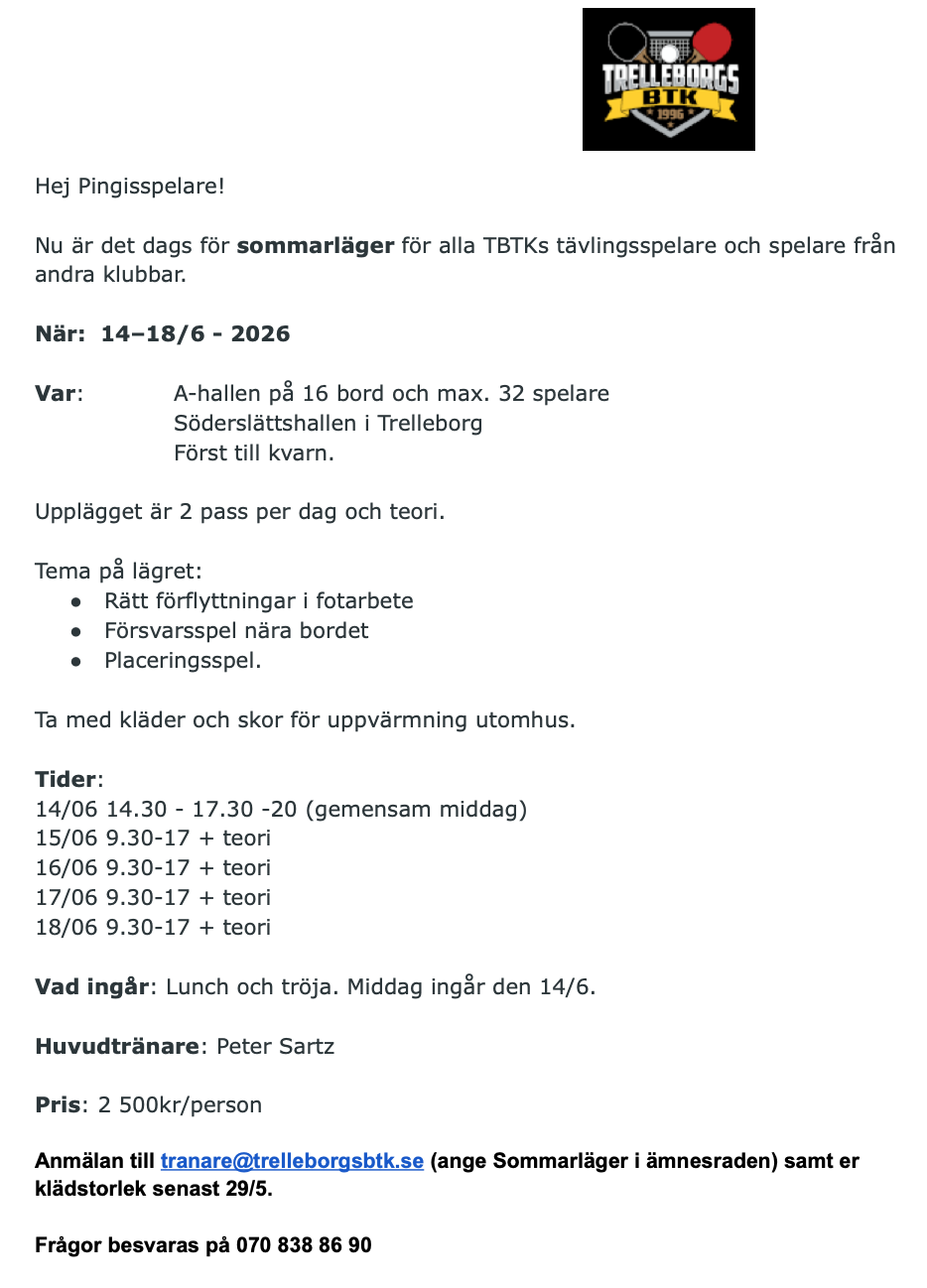 Sommarläger 14 -18 Juni 2026